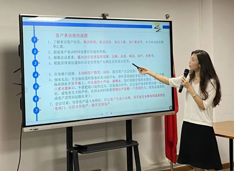 綜合部主任史倩雯生動地為大家介紹了公司的發(fā)展歷程、資質榮譽、企業(yè)文化以及有關的內部管理制度,鼓勵大家積極提出自己的idea,讓惠正與大家一起共同成長。同時,雯姐為大家培訓了商務禮儀,讓新員工們能更好更快地適應職場人的角色。